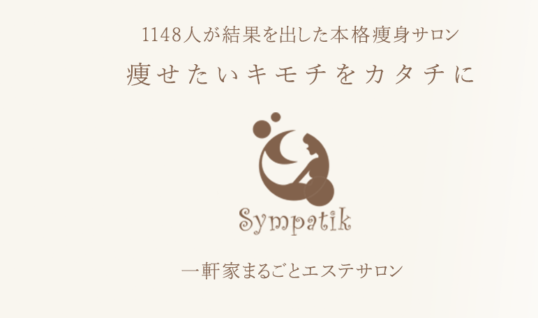 サンパティックの施術ではお客様の体質、骨格や姿勢、生活環境、脂肪のつき方、あらゆる角度からカウンセリングをし、原因から分析し、状態にあった施術コースを作っていきます。 痩身の基本は心身ともに健康であること。低体温、冷え、むくみ、肩こり、便秘、頭痛、けだるさ、疲れの取れにくさ、睡眠不足、更年期、自律神経の乱れなど、内側から健康面の改善(体質改善)をし、理想の体型へと近づけていきます。三面美容(内面・外面・精神面)すべてのアプローチを心掛け結果へと結びつけていきます。 初めてのエステで不安な方もスタッフ全員が施術だけではなく、ご自宅にいる時もお手紙やメールでフォローさせて頂きますのでご安心ください。