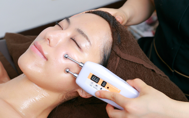 工程:クレンジング・洗顔→イオンピール→ビタミンC導入→ブレンドオイルマッサージ→光保湿パック→整肌